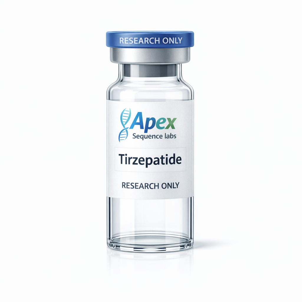 Tirzepatide (LY3298176) is a groundbreaking synthetic peptide and dual receptor agonist that simultaneously targets both the Glucose-dependent Insulinotropic Polypeptide (GIP) receptor and the Glucagon-like Peptide-1 (GLP-1) receptor. As one of the most extensively studied and clinically evaluated peptide compounds of the past decade, Tirzepatide has generated significant scientific interest for its potent effects on glucose metabolism, energy homeostasis, and body composition regulation. Apex Sequence Labs offers Tirzepatide at the highest purity standards, rigorously tested and manufactured under strict quality control protocols to ensure consistency and reliability for advanced scientific research.